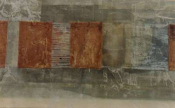 "Diários" aquarela, colagem sobre papel poliuretano encerados, com costura 1,80x0,90 cm / 1999